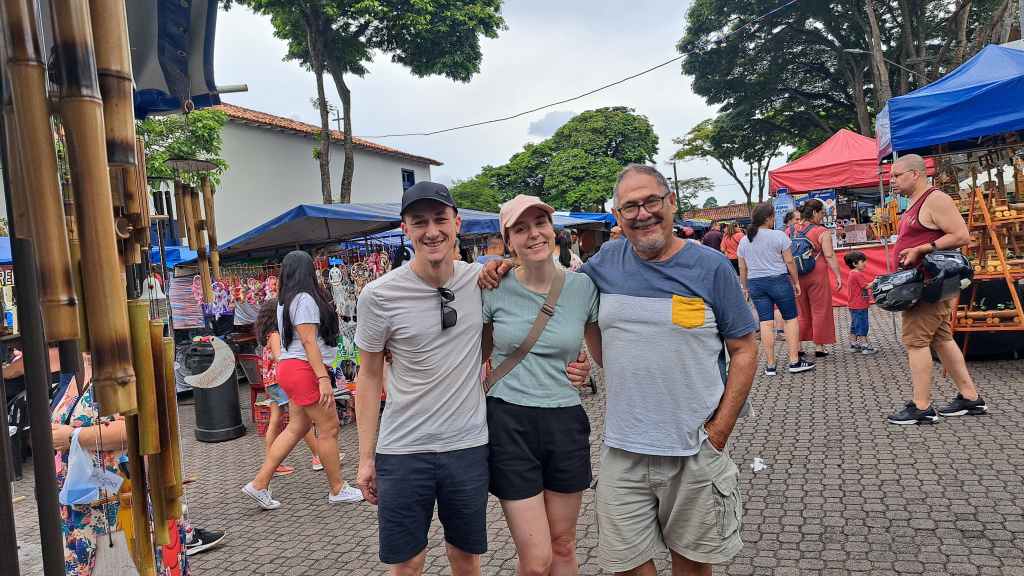 Die nächsten beiden Tage verbrachten wir mit verschiedenen, kleineren Ausflügen. So besuchten wir in Embu de Artes einen typisch brasilianischen Markt. Dieser Markt findet immer am Wochenende statt und es gibt dort viele Leckereien sowie handwerkliche Produkte. Auch Caros Papa hat dort einen Stand, bei dem er handgefertigte Dekoartikel aus Ton und Holz verkauft.