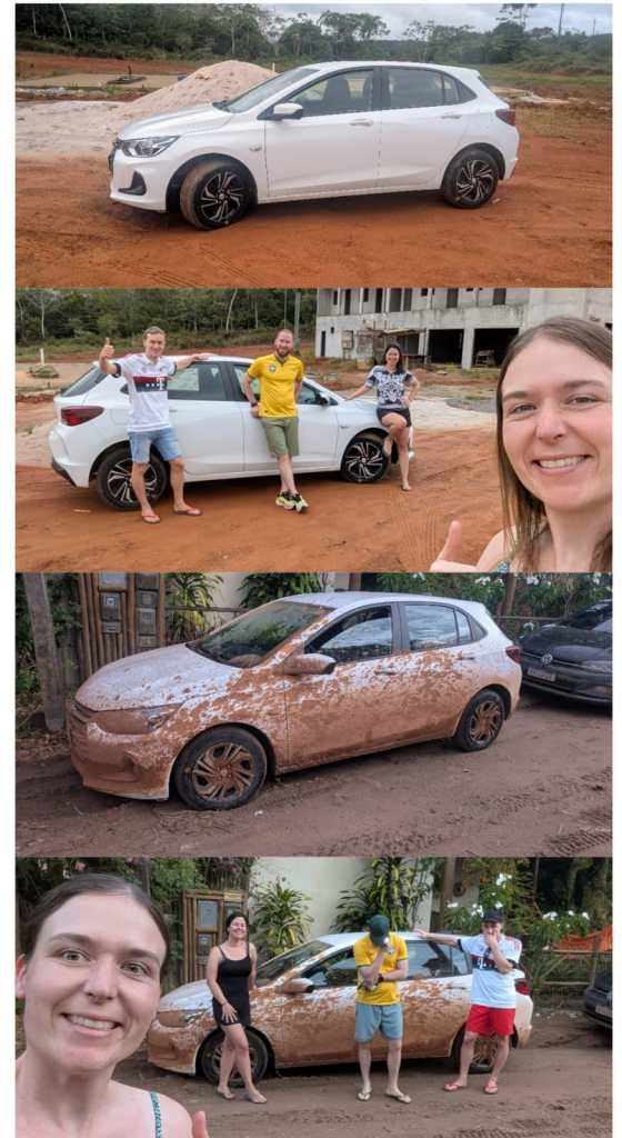 An unserem dritten Tag ging es für uns weiter nach Barra Grande. Barra Grande befindet sich auf der Halbinsel Maraú, welche südlich von Salvador liegt und sich noch nicht lange auf der touristischen Landkarte befindet. Man merkt, dass dieser Ort noch nicht so lange touristisch erschlossen ist, da sich die Anfahrt entsprechend schwierig gestaltete. Michael hat uns vorab darüber informiert, dass die Straßenverhältnisse dorthin eher schlecht sind und wir daher etwas mehr Zeit einplanen sollten. Uns war jedoch nicht bewusst, dass es dann doch so beschwerlich sein sollte. Den Tag davor hatte es sehr viel geregnet und Sandstraße glich einer einzigen, hügeligen Matschpiste. Zwischendurch dachten wir einmal kurz, dass unser Auto die Strecke nicht schaffen würde. Im Endeffekt kamen wir jedoch wohlbehalten am Ziel an, auch wenn unser Auto deutliche Spuren davon getragen hatte :D.