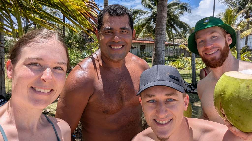 Im Allgemeinen verbrachten wir auch hier wieder viel Zeit am Strand. Ein Local-Guide verhalf uns netterweise dazu Kokosnüsse direkt vom Baum zu ernten und zu öffnen. So genossen wir Kokoswasser direkt am Strand und kühlten uns zwischendurch im Meer ab. In Barra Grande probierten wir auch einen Saft aus der Kakaofrucht, der mit Honig verfeinert wird. Wir kennen in Europa vor allem die Kakaobohne, die aus den Samen der Kakaofrucht stammt. Die eigentliche Frucht, die sich um den Samen befindet, wird jedoch nicht exportiert, da diese leicht verderblich ist. Wir probierten sowohl die rohe Frucht, als auch die verarbeitete Frucht als Saft. Die Frucht an sich ist etwas glibberig, aber schmeckt sehr süß und super lecker!