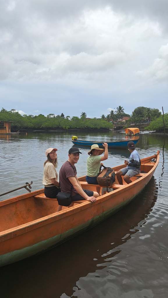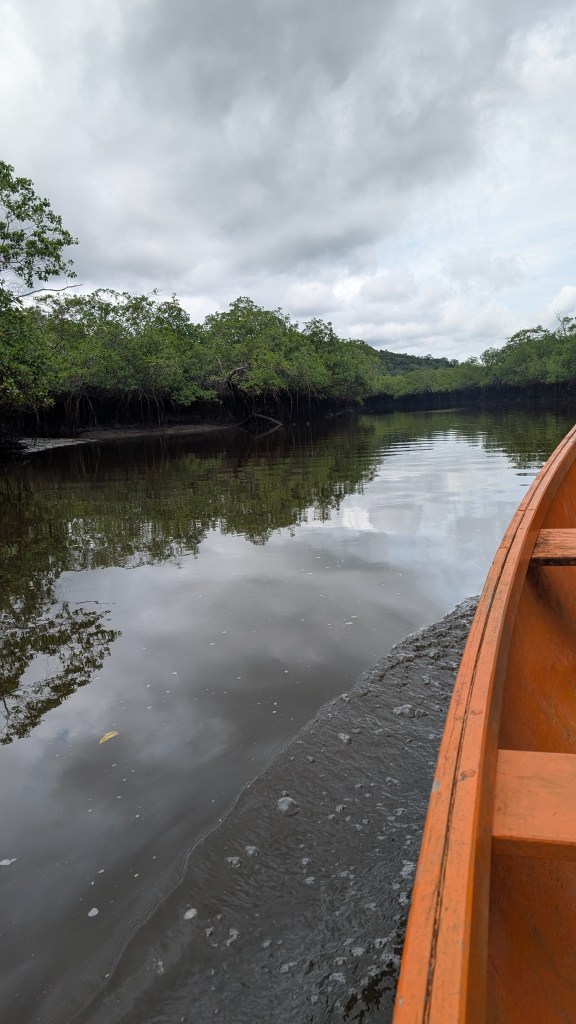 Nachdem wir zwei Tage in Barra Grande verbracht hatten, ging es für uns noch einmal zwei Tage nach Itacaré. Der Rückweg gestaltete sich glücklicherweise etwas einfacher als der Hinweg, sodass wir zeitnah in Itacaré ankamen. Auf dem Weg dorthin machten wir noch einen Zwischenstopp in Maraú, einem kleinen Dorf bei Itacaré. Dort wollten wir eine Bootstour durch die Mangroven zu einem Wasserfall machen. Das war eines der einprägsamsten Momente unseres gesamten Aufenthalts in Brasilien. Als wir im Dorf ankamen, sahen wir viele Dorfbewohner, die vor ihren Hütten auf dem Gehsteig saßen und uns beobachten. In der Ortsmitte bot uns dann ein Fischer, mit einer Dose Bier in der Hand, an, uns zum Wasserfall zu fahren und zog sich ein „Tourguide-Shirt“ über. Neben diesem Fischer, gab es noch weitere Männer, die solche Shirts trugen und vergeblich auf Touristen warteten. Wir sagten zu und gingen mit ihm zu seinem kleinen Haus, an dem sich ein Steg zum Fluss befand. Neben seinem Haus befand sich ein Restaurant, in dem sich jedoch keine Gäste befanden. Vor seinem Haus saßen zwei weitere Männer. Wir fanden die Vorstellung schlimm, dass diese Menschen den ganzen Tag nur vor ihren Häusern sitzen und das ein oder andere Bier trinken. Doch so war es. Der Großteil des Dorfes lebt so. Es gibt leider nicht genügend Arbeitsplätze und unzureichend gute Bildung. Die Menschen haben kaum Perspektive und versuchen sich so gut es geht, selbst zu versorgen. Positiv war es immerhin, dass es ein kleines, vom Staat gefördertes Ärztezentrum im Ort gibt. Das Leben der Menschen dort war doch ein ernüchternder Moment und wird uns noch lange in Erinnerung bleiben. Trotz der einfachen Verhältnisse waren die Menschen uns gegenüber aber sehr aufgeschlossen und freundlich. Die Bootstour zu Wasserfall führte und durch einen kleinen Mangrovenwald mit vielen Flusskrebsen. Am Wasserfall selbst war die Luft schön frisch und angenehm und wir verbrachten dort eine gute Stunde. Im Anschluss fuhren wir wieder zurück nach Itacaré.