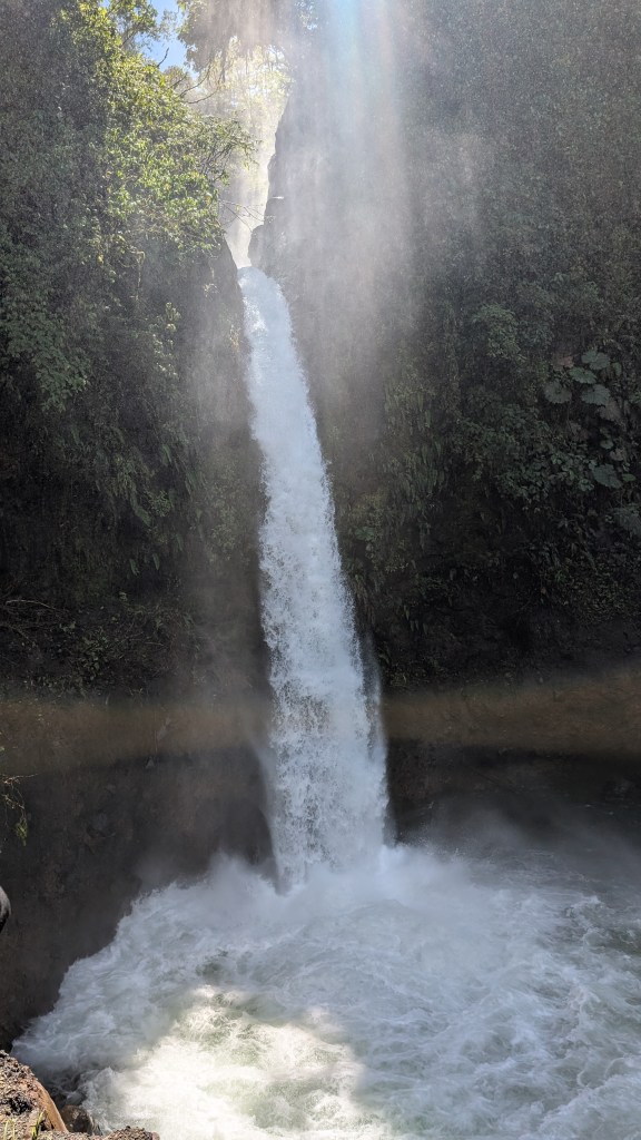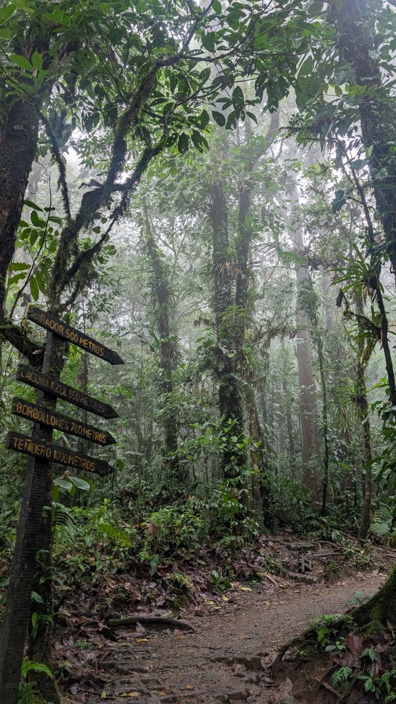 Wir zweifelten sogar, ob wir nicht lieber umdrehen und nach einer Alternative Ausschau halten sollten. Im Endeffekt zogen wir es durch und es hat sich wirklich gelohnt! Es war ein ganz besonderes Gefühl mitten in einem tropischen Regenwald zu stehen. Das Wasser kam von überall und wir waren klatschnass, aber das machte es umso besonderer. Das Wetter spielte hier im Allgemeinen ziemlich verrückt und wechselte immer zwischen strahlendem Sonnenschein und strömendem Regen. Das machte es mit der Planung unserer Kleidung manchmal etwas schwierig. Wir nahmen daher zu jedem Ausflug immer ein zusätzliches Regencape mit. Das würden wir auch jedem, der eine längere Reise in Süd- oder Mittelamerika macht, empfehlen. Passt in jeden Rucksack und erweist sich als überaus praktisch.