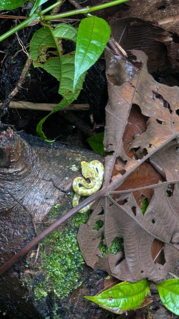 Eines Morgens wurden wir von einem lauten Brüllen geweckt. Das Geräusch war so laut, dass wir zuerst dachten, dass ein Raubtier vor unserer Türe steht. Als wir später nach draußen gingen, sahen wir, dass im dem Baum nebenan eine Gruppe Brüllaffen saß und vor sich hin döste. Einfach unglaublich, was man hier bereits morgens alles beobachten kann. In einem weiteren Park haben wir außerdem eine kleine, gelbe Viper auffinden können. Viele Schlangen hier sind zwar giftig, allerdings meiden sie die Menschen und ergreifen eher die Flucht, als dass sie angreifen würden. Auch das Exemplar, welches wir antrafen, war sehr entspannt und kleiner als wir dachten.