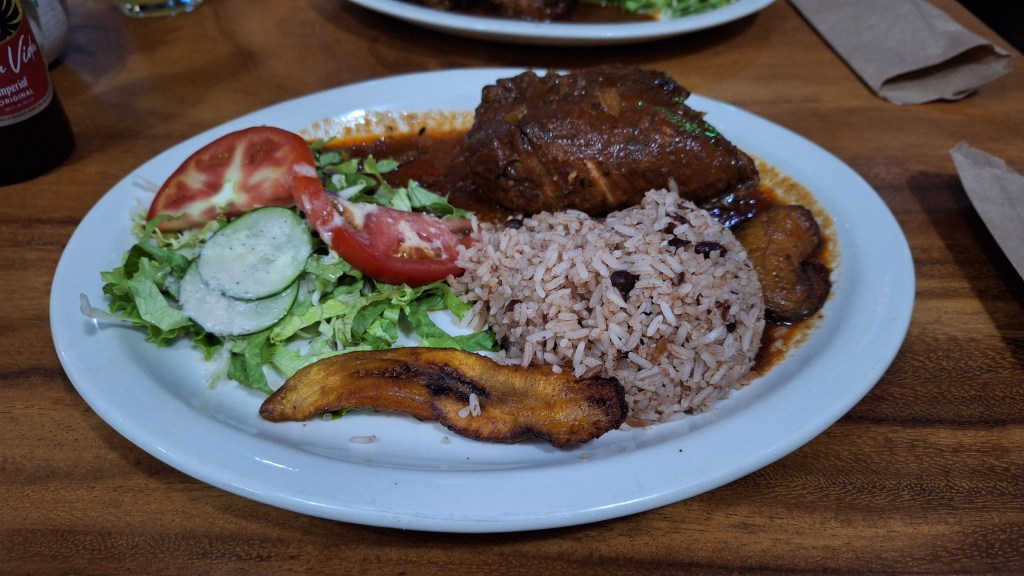 Die Stadt eignet sich daher gut dafür, um abends Essen zu gehen und eine gute Zeit zu haben. Super gefallen haben uns die kleinen Sodas. Dabei handelt es sich um kleine Restaurants, die typisch karibisches Essen zu einem erschwinglichen Preis anbieten. Es gibt sie an fast jeder Ecke und das Essen hat wirklich lecker geschmeckt! Grundlage für das Essen hier ist vor allem Reis, Kartoffeln und Kochbananen. Letzteres wird zusammengedrückt und frittiert. Wir waren sehr überrascht, denn frittiert schmeckt die Kochbanane wie Pommes und dient somit super als Alternative für Kartoffeln. Sehr empfehlenswert waren auch die karibischen Soßen, bestehend aus Kokosmilch und Gewürzen die man dazu serviert bekommen hat. Zu dem Essen gab es dann immer noch einen frischen Fruchtsmoothie. Unsere Favoriten: Ananas und Mango.