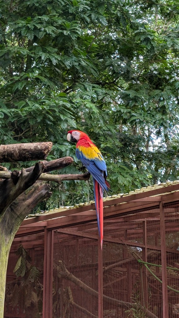Nach so viel Abenteuer wollten wir es am nächsten Tag etwas ruhiger angehen lassen. Wir entschieden uns daher das Jaguar Rescue Center zu besuchen. Das Jaguar Rescue Center ist eine Auffangstation für Wildtiere, welches sich der Rehabilitation von misshandelten, verletzten, verwaisten oder beschlagnahmten Tieren widmet. Ziel ist es, die Tiere nach erfolgreicher Rehabilitation wieder auszuwildern. Leider eignen sich viele Tiere nicht dafür, später wieder ausgewildert zu werden, da sie für ihr Leben lang gehandicapt sind bzw. sich zu sehr an den Menschen gewöhnt haben. Diesen Tieren wird dann im Rescue Center ein artgerechtes Leben ermöglicht. Der Eintrittspreis unterstützt dabei zu 100% die Arbeit der Organisation. Innerhalb einer zweistündigen Führung erfuhren wir einiges über die Arbeit der Organisation, welche Projekte sie ins Leben gerufen haben und darüber, wie sich das Rescue Center innerhalb der letzten Jahren entwickelt hat. Zudem wurde uns zu jedem Tier, welches sich aktuell im Rescue Center befindet, eine Geschichte erzählt. Viele Geschichten werden uns dabei noch lange in Erinnerung bleiben, da die Tiere teilweise schon sehr schlimme Dinge durchstehen mussten. So gab es einige Faultiere, die aufgrund von Stromschlägen ins Rescue Center kamen, da sie über Stromkabel klettern wollten und daher einen Elektroschock erlitten. Am Schlimmsten war die Geschichte eines über 30jährigen Affen, der 27 Jahre lang von Privatpersonen angekettet in einer Garage gelebt hat und glücklicherweise letztendlich von der Polizei beschlagnahmt wurde. Leider ist zum Großteil immer der Mensch einer der Hauptgründe, warum die Tiere ins Rescue Center kommen. Im Allgemeinen waren wir wirklich sehr beeindruckt von der Arbeit der Freiwilligen vor Ort und können einen Besuch dort wirklich jedem ans Herz legen.