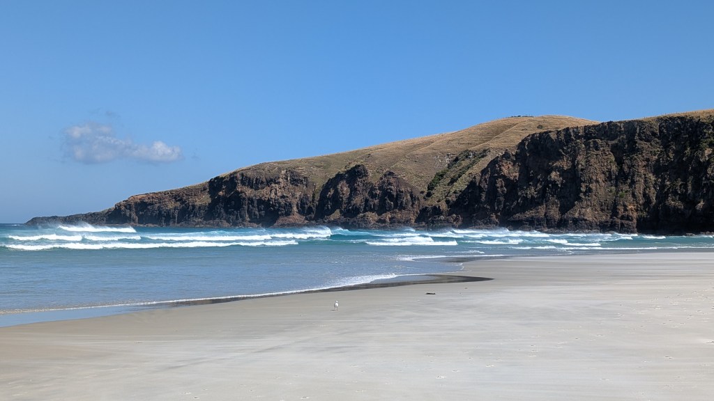 Wir haben lange überlegt, welche Route wir wählen sollten. Gerne hätten wir auch noch den Norden der Südinsel Neuseelands mit dem Abel Tasman Nationalpark mit dazu genommen. Da die Autofahrt dorthin jedoch leider den Rahmen gesprengt hätte, entschieden wir uns dafür, an die Ostküste nach Dunedin zu fahren. Dunedin ist die zweitgrößte Stadt auf der Südinsel und unser Campingplatz befand sich nur wenige Meter vom Strand entfernt. Den Strand erreichte man über einen Weg durch die Dünen und er erinnerte uns ein wenig am Dänemark oder Südschweden. Dort hat es uns aber gleich so gut gefallen, dass wir uns entschieden haben, noch einen Tag länger zu bleiben.