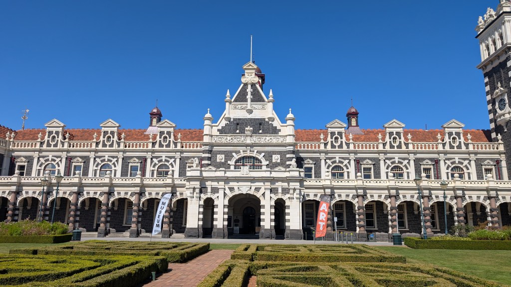 Auf dem Weg zurück hielten wir noch kurz in der Innenstadt von Dunedin an. Hier gibt es viele kleine Bars, Bierbrauereien und Shops. Außerdem besitzt die Stadt ein beeindruckendes Bahnhofsgebäude, welches auf jeden Fall einen Besuch wert ist.