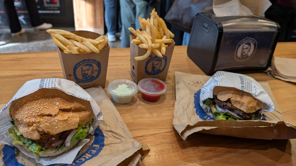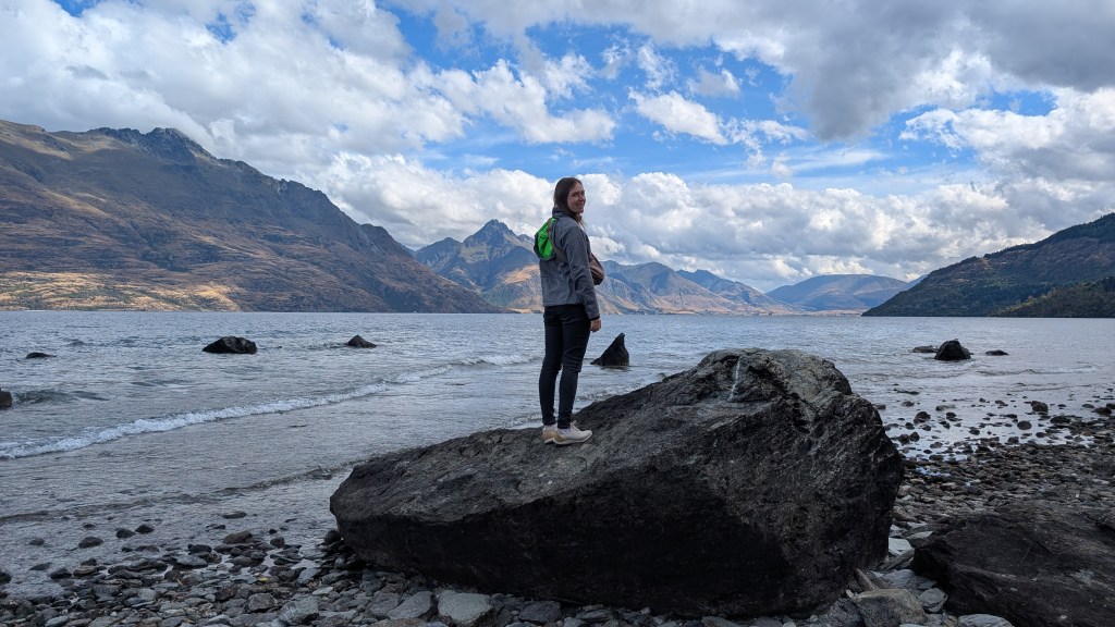 Am Abend wollten wir dann noch den „Besten Burger Neuseelands“ essen. Es handelt sich dabei um den sogenannten „Fergburger“ und dieser ist sehr bekannt (was sich schon an der langen Schlange vor dem Imbiss bemerkbar machte). Wir fragten uns, ob es der Hype wirklich wert war und wir können sagen… definitiv ja!! Wir haben schon lange nicht mehr einen soooooo leckeren und frischen Burger + Pommes gegessen. Hat sich sehr gelohnt. Im allgemeinen hat man in Queenstown viele Möglichkeiten sich durchzuschlemmen 😅😅.