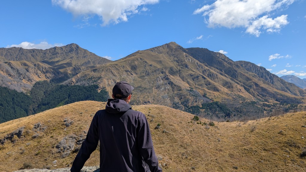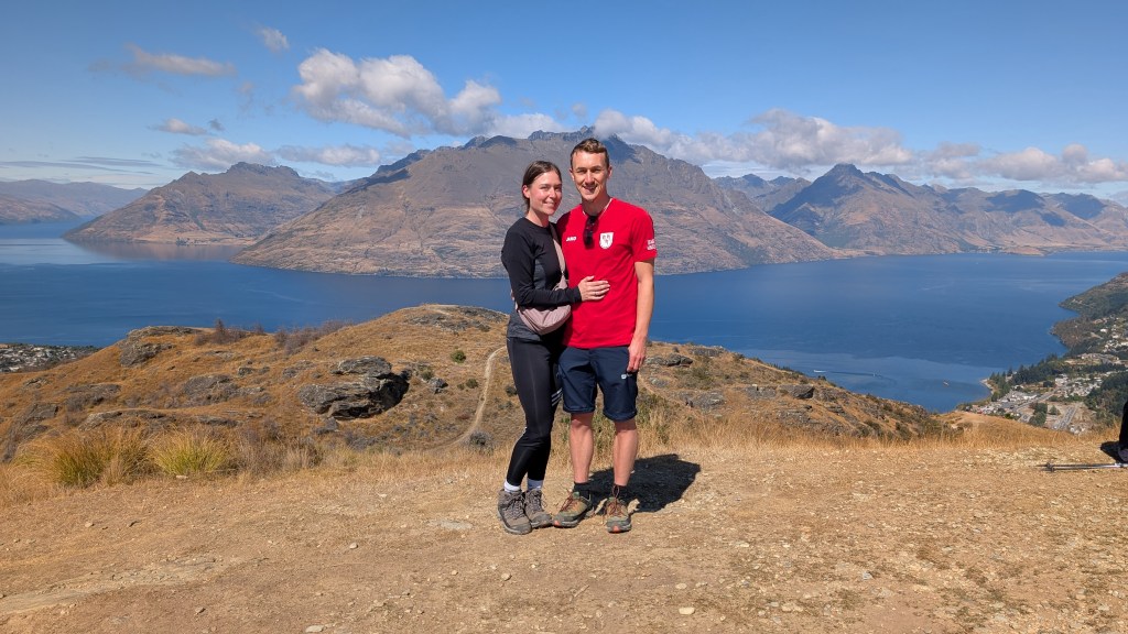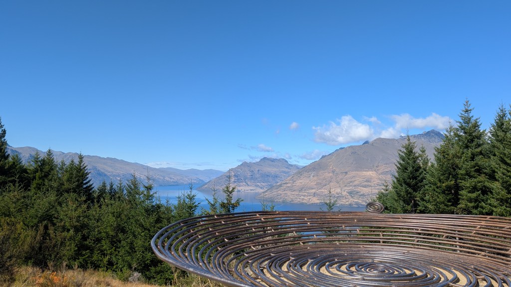 Am zweiten Tag wachten wir erst mal wegen der eisigen Kälte auf. Da unser Campingplatz direkt an dem Fuß eines Hanges lag, kam morgens noch nicht viel Sonne durch und die Temperaturen lagen bei lediglich 10 Grad. Da möchte man nur ungern aufstehen. Der Instantkaffee war kaum in der Tasse und dann auch wieder kalt 😂. Naja, sind ja nicht im Urlaub und auch nicht zum Kaffeetrinken hier sondern hatten einen straffen Zeitplan. So entschieden wir uns für den Queenstown Hill Track. Wie der Name schon sagt, führt dieser auf die Spitze einer kleinen Bergkette, von der man einen schönen Ausblick auf die Stadt und den See hat. Können wir sehr empfehlen, vor allem weil der Weg dorthin sehr kurzweilig war.