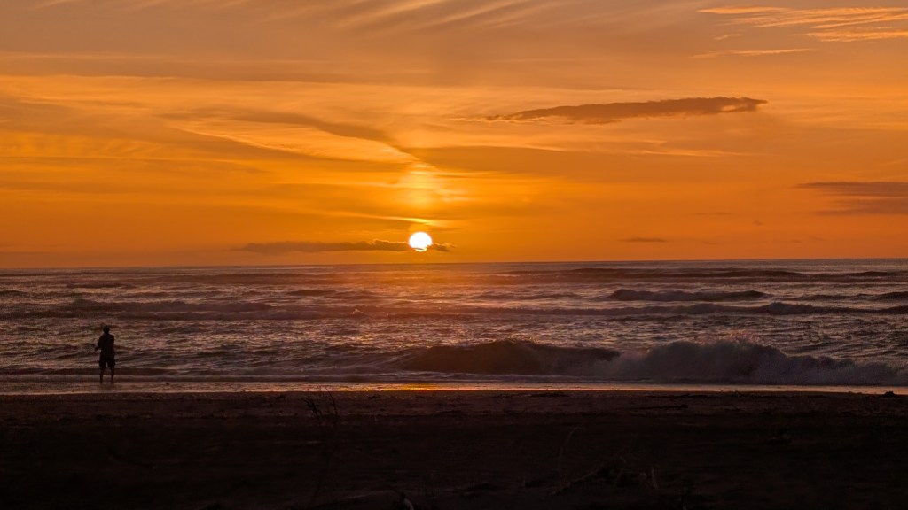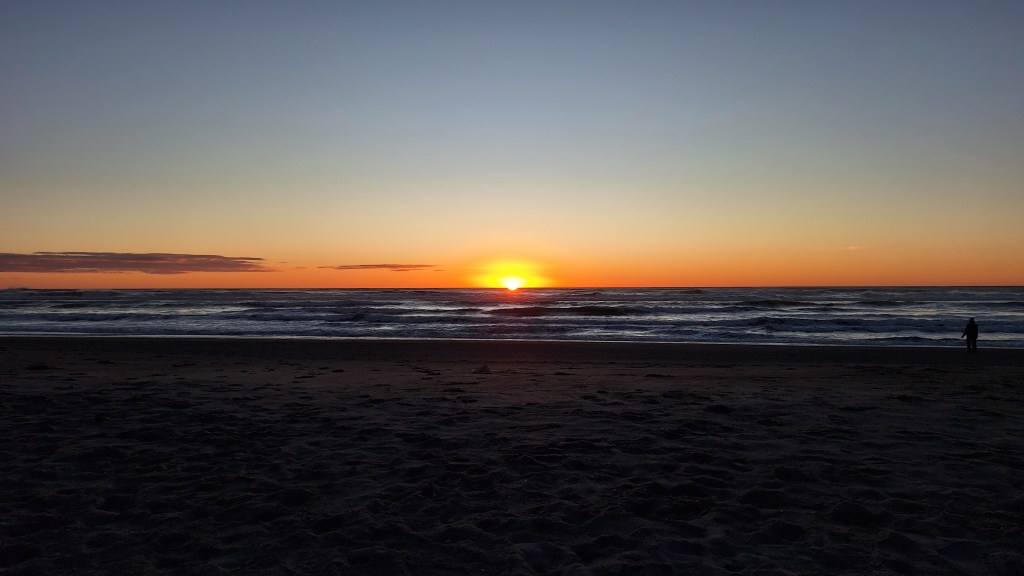 Unseren letzten Tag an der Westküste ließen wir gemütlich mit einem Bier am Meer ausklingen und schauten uns dabei den Sonnenuntergang an.