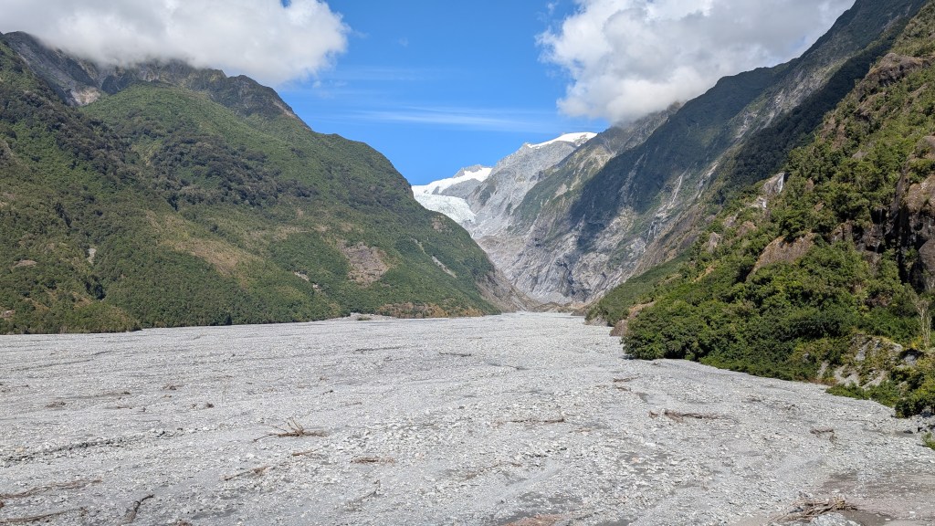 Die letzten Tage in Neuseeland verbrachten wir an der Westküste der Südinsel. Auf dem Weg liegen die beiden Gletscher Fox und Franz Josef. Wir machten jeweils einen kleinen Zwischenstopp, um die kurzen Wanderwege zu laufen, die zu einem Aussichtspunkt führten. Obwohl man die Gletscher nur von Weitem betrachten konnten, hinterließen sie einen bleibenden Eindruck. Es ist bemerkenswert, wie wichtig die Gletscher für das komplette Ökosystem sind. Daher war es wieder einmal umso erschreckender, wie weit sich diese über die Jahre aufgrund des Klimawandels bereits zurückgezogen haben und es immer weiter tun.