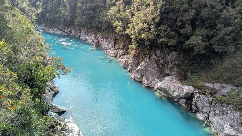 Am nächsten Tag machten wir einen kleinen Ausflug zum Hokitika Gorge, einer Klamm mit glasklarem Wasser.