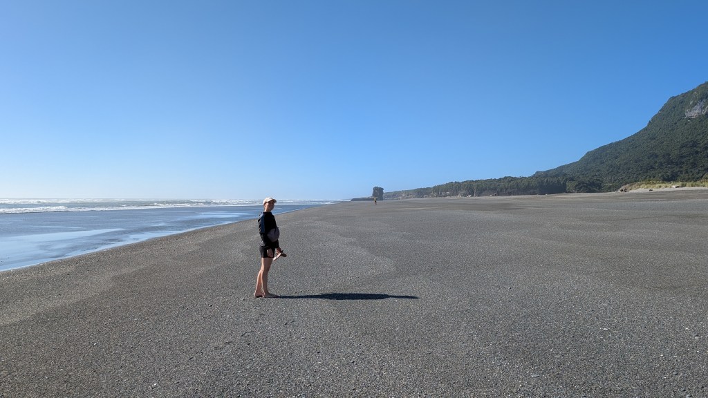 Die nächsten zwei Nächte verbrachten wir in Hokitika, einem kleinen Örtchen an der Westküste. Man muss dazu sagen, dass die Ortschaften an der Westküste sehr weit Auseinanderliegen, da die Gegend nur sehr dünn besiedelt ist. Hokitika liegt direkt am Meer, weshalb abends ein schöner Sonnuntergang auf uns wartete.