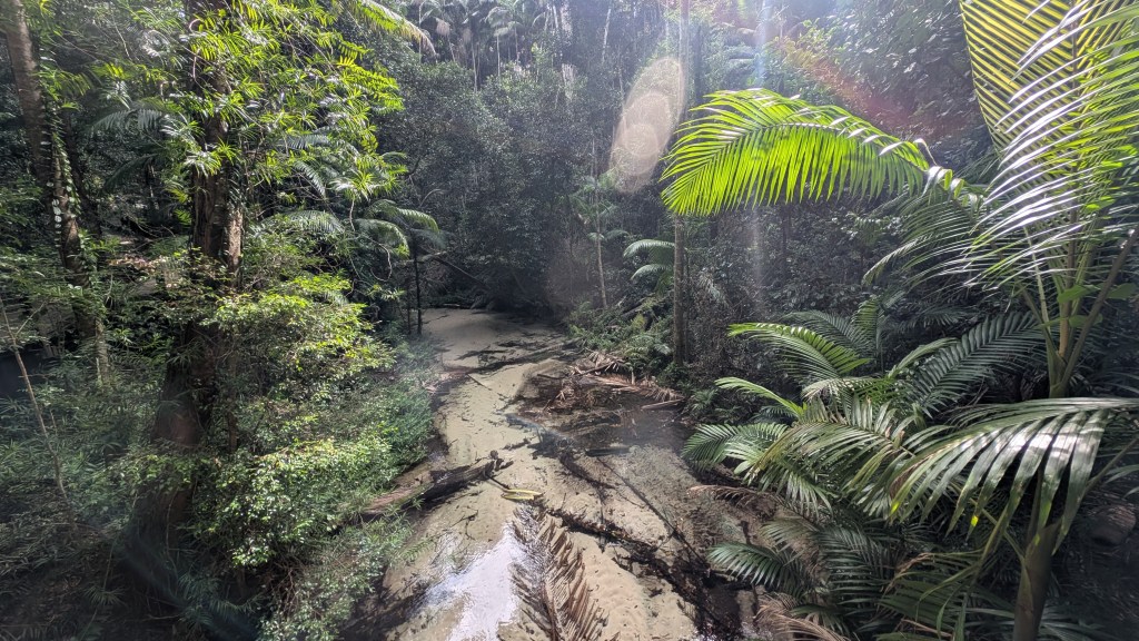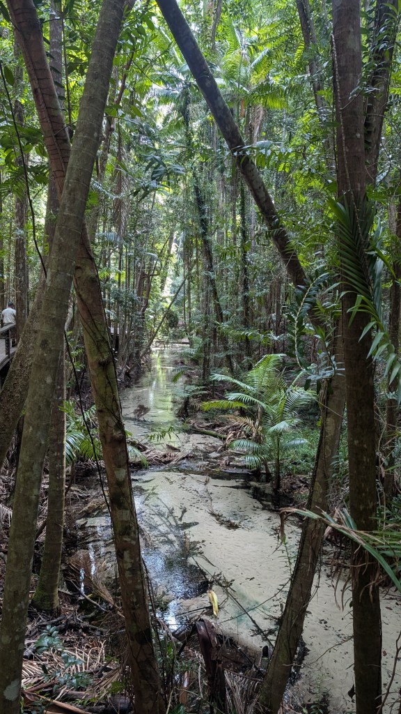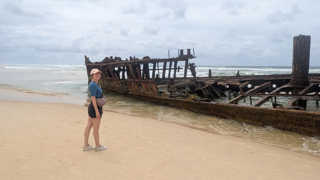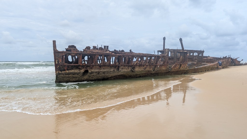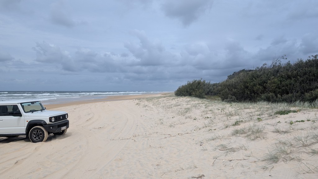 In Hervey Bay hatten wir für den nächsten Tag eine Tour auf die Insel K’gari (früher Fraser Island) gebucht. Dies ist die größte Sandinsel der Welt und unter anderem Heimat von atmenberaubenden Regenwäldern und Dingos. Schon die Fahrt mit dem Bus war ein Abenteuer. Auf der Insel gibt es keine geteerten Wege sondern nur Sandstraßen. Daher darf man ohne Allradantrieb auch schon mal gar nicht auf der Insel Auto fahren. Unser Bus hatte zwar einen Allradantrieb, allerdings ist er bereits auf halber Strecke im Sand stecken geblieben und nicht mehr vom Fleck gekommen. Nach einem kurzen Panikmoment stieg unser Fahrer, der übrigens aussah wie ein Bodyguard 😂, aus, packte eine Schaufel aus und buddelte den Bus wieder frei. Die Fahrt konnte somit weitergehen 😂. Das lustige ist, dass der Strand auf K’gari eigentlich ein Highway ist, auf dem man mit dem Auto fahren kann. Es gibt dort tatsächlich auch Schilder für Geschwindigkeitsbegrenzungen.