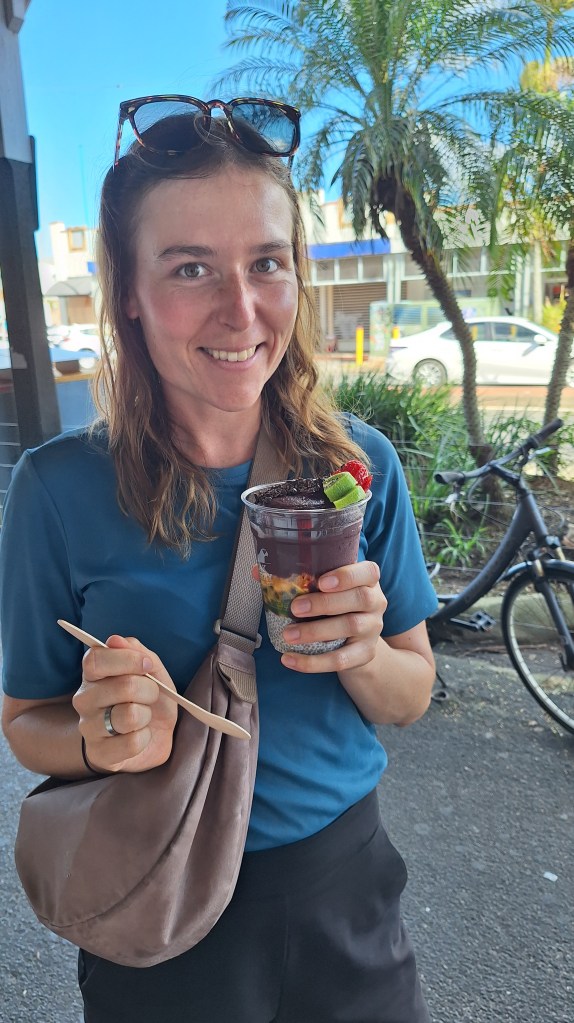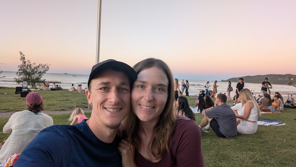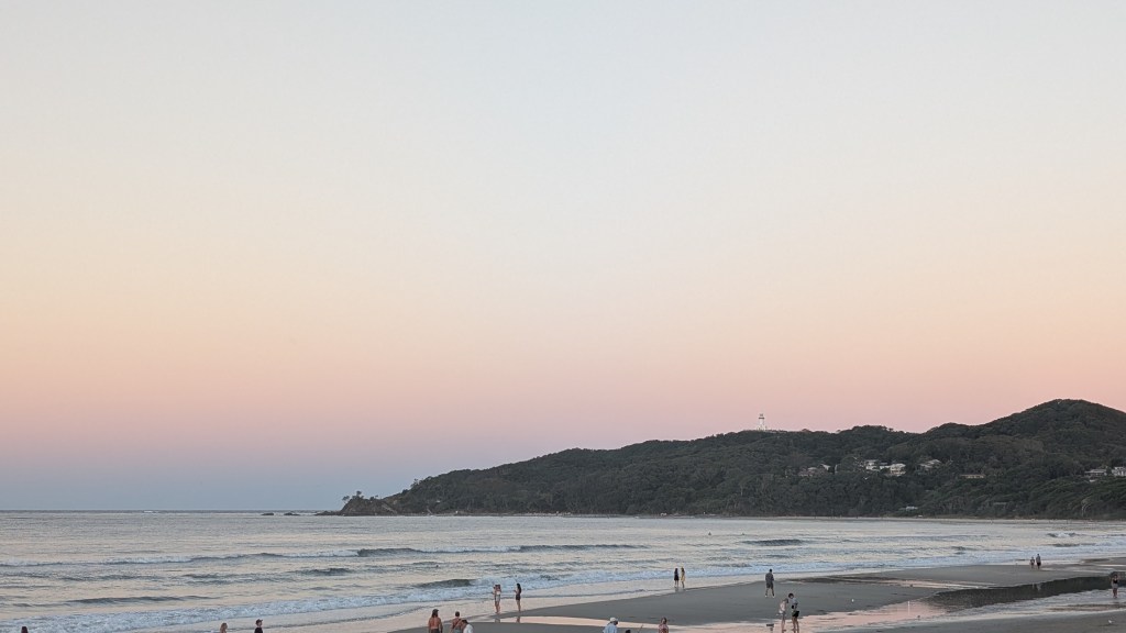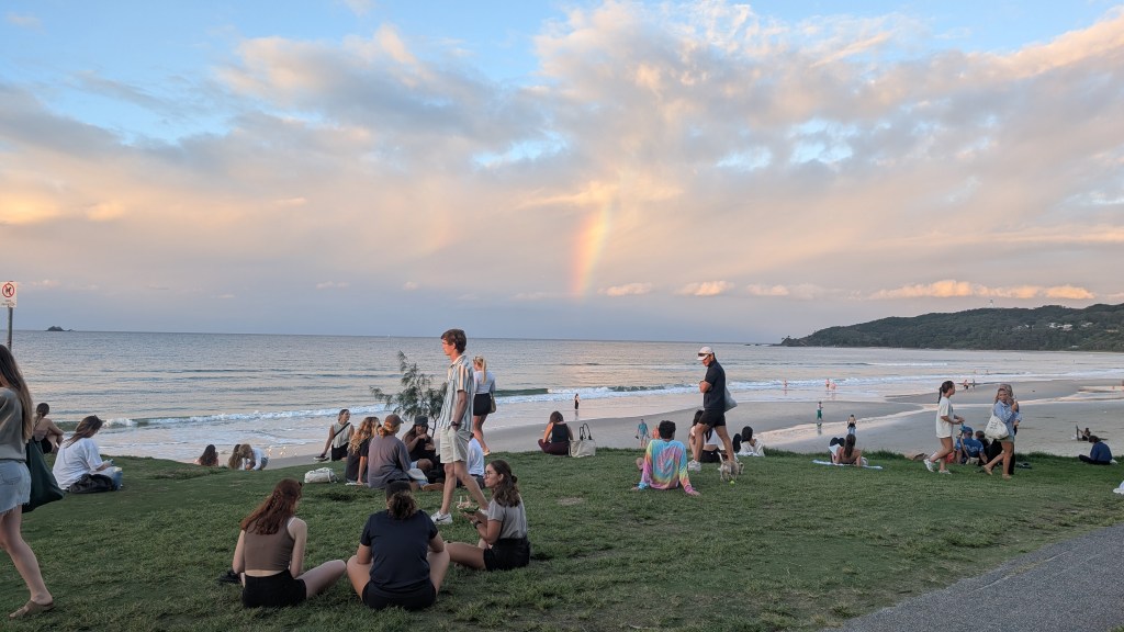 Angekommen in Byron Bay wurde das Wetter tatsächlich etwas besser und der Wetterbericht für die nächsten Tage sah vielversprechend aus! Wir entschieden uns daher zwei Nächte hier zu bleiben und herauszufinden, warum dieser Ort bei vielen so beliebt ist. Wir dachten zuerst auch, dass Byron Bay nur ein Hype sei, der durch die vielen jungen Menschen hier verbreitet wird. Wenn man aber selbst durch die kleinen Straßen schlendert, in einem der vielen kleinen Cafés sitzt und abends den Sonnenuntergang bei Gitarrenmusik mit vielen anderen Menschen anschaut, fühlt man es einfach. Es waren zwei ganz besondere Tage für uns und wir haben uns sehr wohl gefühlt. Man hat hier die Möglichkeit, den Lifestyle der Australier zu leben und was soll ich sagen…wir lieben es durch und durch. Man spürt sofort die Leichtigkeit und die Ruhe, die dieser Ort verbreitet.