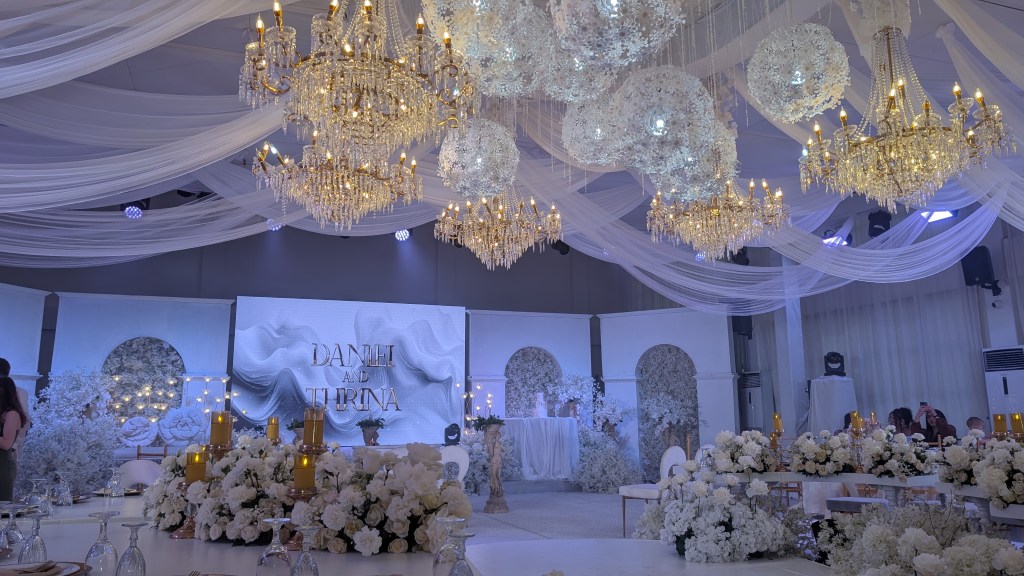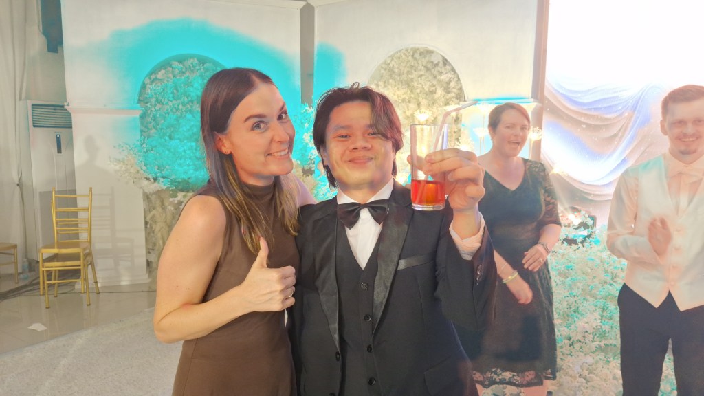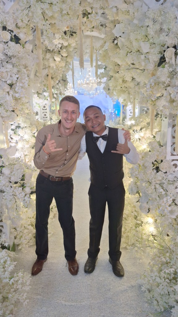 Und dann war er auch schon da, der Tag der Trauung von Daniel und Thrina. Das Wetter machte der Feier ausgerechnet zur geplanten Freiluft-Trauung einen Strich durch die Rechnung – es regnete wie aus Eimern, weshalb alles spontan nach innen verlegt werden musste. In der wunderschön dekorierten Halle war das aber trotzdem ein würdiger Ersatz. Es war ein sehr schöner, emotionaler und lustiger Abend. Die Filipinos waren alle so herzlich und offen, sodass wir uns von der ersten Sekunde an super wohl gefühlt haben.