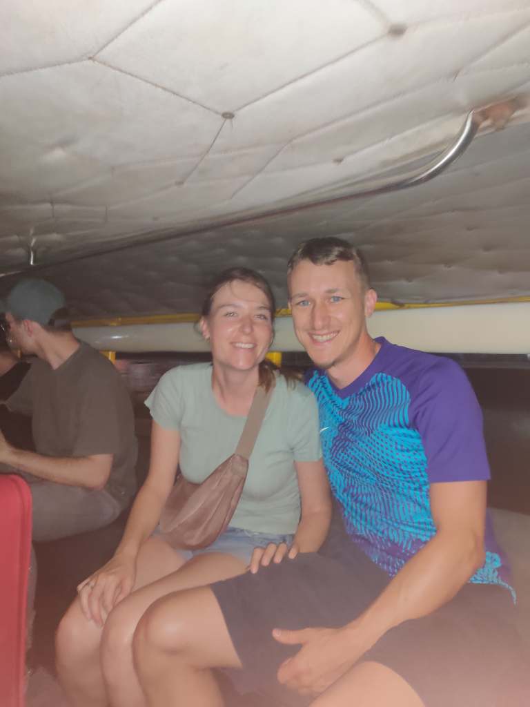 Und dann waren wir da, das erste Mal Asien. Am Flughafen in Davao holten uns Daniel und Thrina ab, leider nicht mit unserem ganzen Gepäck. Die Airline hatte Sarahs Rucksack in Manila vergessen (das haben sie uns offen und ehrlich so gesagt). Es kam zum Glück noch in der gleichen Nacht mit dem letzten Flug aus Manila an. Und so fuhren wir erst einmal zum Hotel – und sahen den verrückten Verkehr und die vielen Roller und Motorräder, die sich alle kreuz und quer den Weg bahnten. Da waren wir doch ganz froh, im Auto zu sitzen 😅.