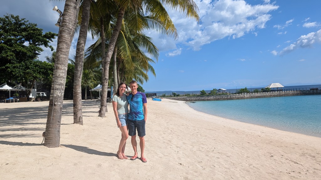 Am nächsten Tag waren wir zusammen mit Daniels und Thrinas Familien Mittagessen und bekamen so schon einmal vorab die Möglichkeit, viele tolle Menschen noch vor der Feier kennenzulernen. Außerdem befand sich das Resort, in dem wir Mittag gegessen hatten, auf einer wunderschönen Insel direkt gegenüber von Davao City. Die Umgebung war hier wirklich paradiesisch….weißer Sandstrand, Palmen und glasklares Wasser. Ein toller Start hier auf den Philippinen!