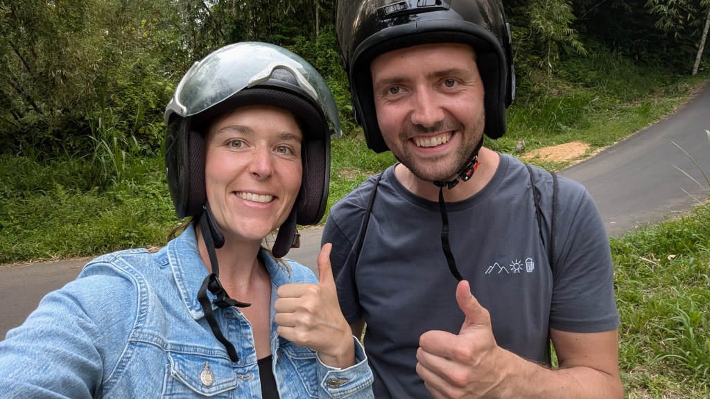 Der nächste Morgen begann allerdings alles andere als schön, denn Anika und Steffen ging es leider gar nicht gut und sie lagen mit Übelkeit im Bett. Wir vermuten, dass die beiden wohl etwas Schlechtes gegessen haben, konnten den Übeltäter jedoch nicht eindeutig identifizieren. Das war natürlich sehr schade, da wir für den Tag eigentlich viele Pläne hatten. Die beiden fielen für diesen Tag leider aus, sodass Julian und Sarah sich an diesem Tag alleine auf den Weg machten. Wir mieteten uns jeweils einen Roller. Diese sind auf Bali unglaublich günstig (ca. 5 Euro am Tag), was jedoch auch den schrecklichen Verkehr auf den Straßen erklärt. Erster Stopp waren die Tegalalang Reisterrassen nicht weit von Ubud. Zu unserer Überraschung war dort gar nicht so viel los und wir hatten den Ausblick von den Reisterrassen teilweise fast für uns allein. Lediglich die Hitze machte einem dort sehr zu schaffen – Schatten gab es dort nämlich nur wenig bis keinen.