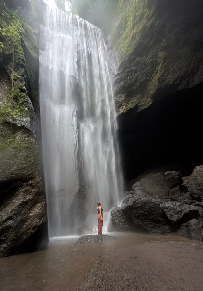 Im Anschluss machten wir uns auf den Weg zu einem Wasserfall, der allerdings eine Fahrtstunde entfernt lag. Während unserer Fahrt fuhren wir in durch viele kleine Ortschaften und bekamen so mit, wie einfach die Leute hier auf dem Land leben. Irgendwie hatten wir uns letztendlich etwas in der Zeit vertan, denn es wurde langsam schon dunkel und das Wetter sah stark nach Regen aus. Als wir am Wasserfall ankamen, waren dort auch kaum mehr Menschen und wir hatten den Wasserfall nahezu alleine für uns. Das war schon sehr cool, aufgrund der vorangeschrittenen Tageszeit, konnten wir uns allerdings nicht mehr ewig dort aufhalten.