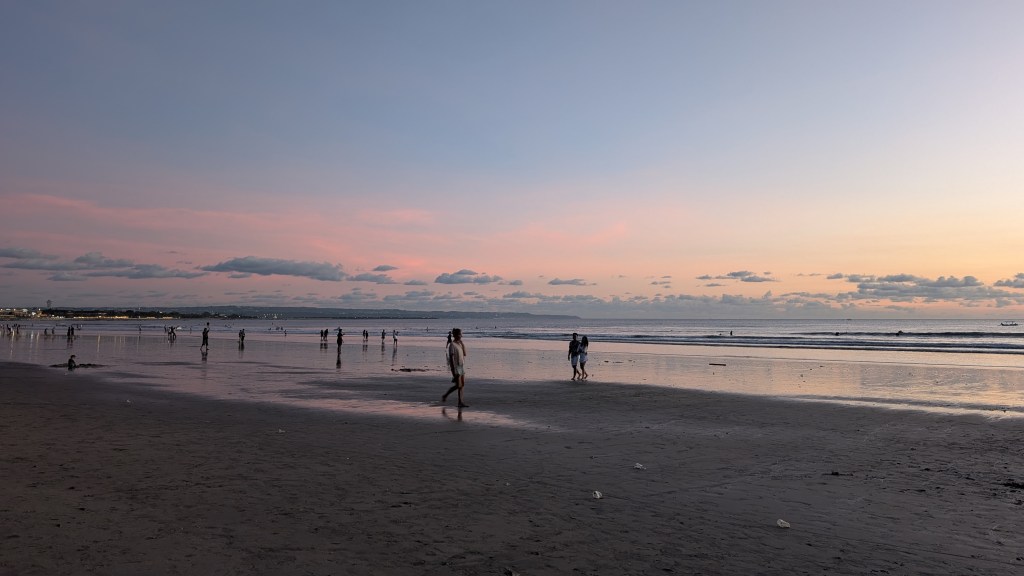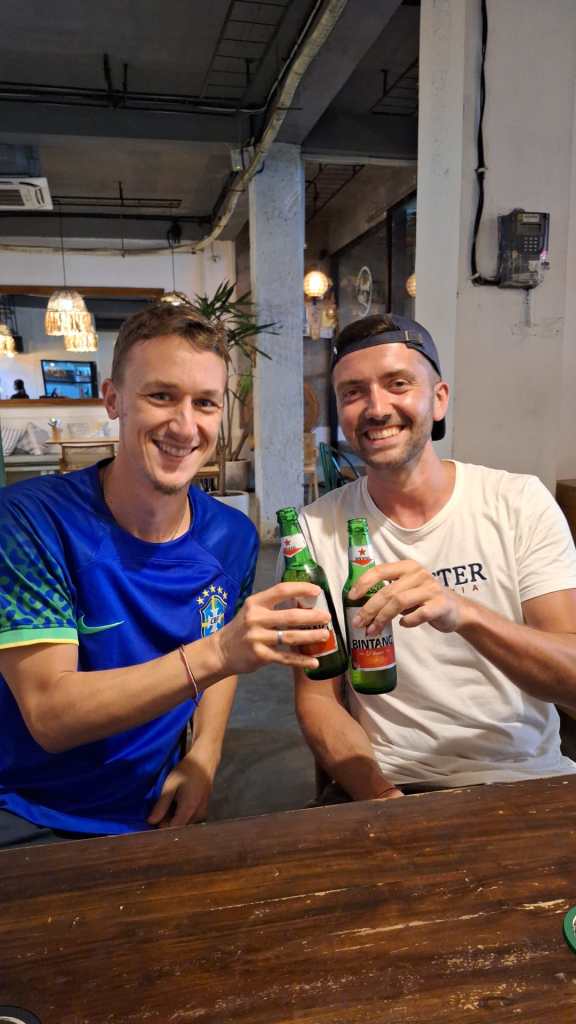 Die Fahrt zurück nach Denpasar dauerte dann über 4,5 Stunden – für knapp 130km. In dieser Zeit fahren wir, wenn es gut läuft, von daheim bis kurz vor Berlin – und das sind über 500km. Aber hier gibt es nun mal keinerlei Autobahnen und der Verkehr ist in den größeren Orten einfach immer sehr heftig. Wir waren froh, als wir dann endlich in Kuta ankamen, einem Nebenort von Denpasar in der Nähe zum Flughafen. Hier trafen wir dann doch nochmals für einen gemeinsamen Abend auf Anika und Julian – unverhofft kommt eben oft 😅.