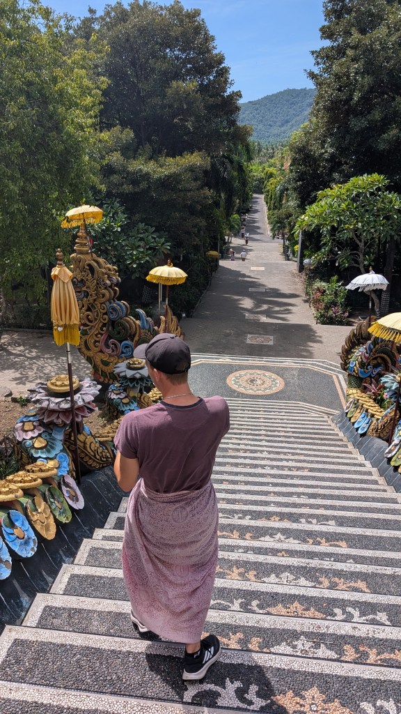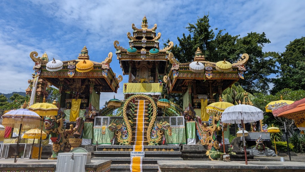 Der letzte Stopp an der Nordküste Balis war für uns demnach Pemuteran. Dieses kleine, verschlafene Örtchen hat es uns zum Ende hin jedoch noch angetan. Wir hatten das Gefühl, dass man hier noch das „richtige“ Bali erleben kann. Es gibt hier weniger Tourismus, authentische kleine Restaurants und wunderschöne Tempel. Außerdem gibt es ganz in der Nähe eine schöne Insel, um die herum man die schönsten Schnorchelspots Indonesiens haben soll. Aufgrund unserer immer noch offenen Wunden trauten wir uns allerdings noch nicht ins Meer und wir mussten auf diesen Ausflug leider verzichten. Da Sarah dann auch noch einen Tag krank war, konnten wir leider nicht ganz so viel unternehmen, wie wir es gerne gemacht hätten. Am letzten Tag besuchten wir allerdings noch einen kleinen Tempel in Pemuteran und wir müssen sagen, dass das bisher der schönste Tempel war, den wir gesehen haben. Wir waren an dem Tag die einzigen Touristen, konnten den Einheimischen bei ihren Ritualen zuschauen und waren beeindruckt von der magischen Stimmung innerhalb dieses Tempels. Unserer Meinung nach ist Pemuteran eine bisher noch relativ unbekannte Perle Balis und wir hoffen, dass das noch lange so bleibt.