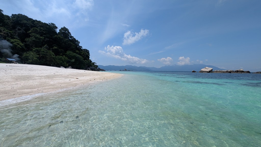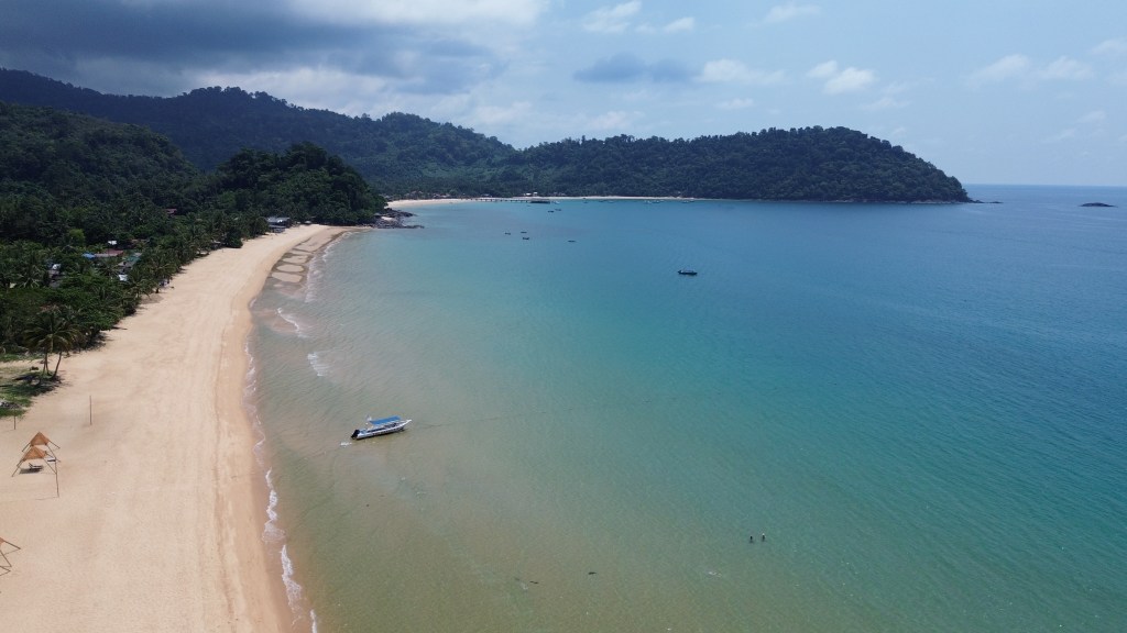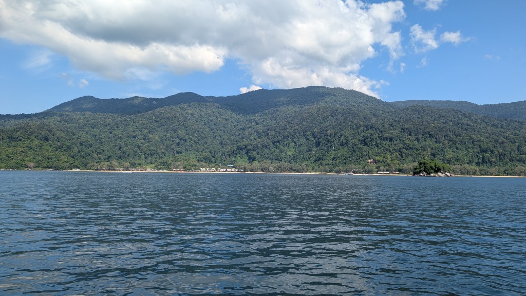 Wusstet ihr, dass in Malaysia neben den sehr interessanten Städten an der Ostküste des Landes auch einige paradiesische Inseln gibt? Wir wussten das zu Beginn auch nicht, nachdem wir uns aber etwas genauer informiert hatten, stand fest, dass wir unbedingt eine Insel besuchen wollten! Wir haben lange hin- und her überlegt, welche Insel für uns die passende ist. Wegen der relativ guten Lage von Pulau Tioman im Südchinesischen Meer und aufgrund der durchaus positiven Erfahrungsberichte, haben wir uns im Endeffekt für diese Insel entschieden. Die Anreise teilten wir demnach auf zwei Tage auf. Erst einmal mussten wir von der Stadt Malakka, die sich wohlgemerkt an der Westküste von Malaysia befindet, einmal durch das komplette Land nach Mersing, an die Ostküste fahren. Wir legten diese 4-stündige Fahrt, aufgrund des unschlagbar günstigen Preises, auch wieder mit dem Bus zurück. Nach einer Übernachtung in dem kleinen Küstenort Mersing, fuhren wir dann am nächsten Morgen mit der Fähre nach Pulau Tioman. Schon als die Insel so langsam in Sichtweite kam, staunten wir nicht schlecht als wir die goldenen Sandstrände und die bergige Landschaft der Insel erblickten.