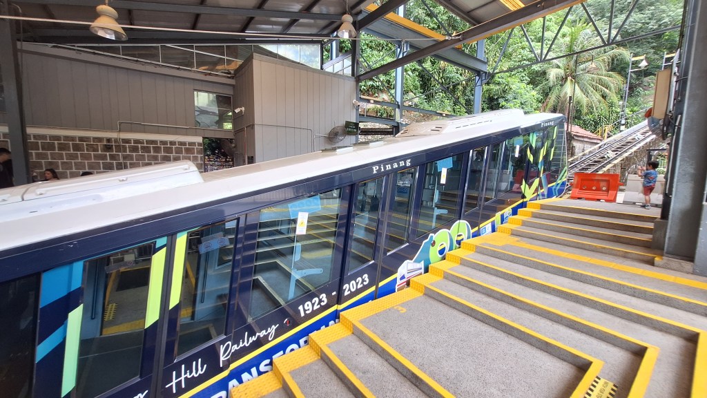 Am nächsten Tag wollten wir hoch hinaus auf den Penang Hill. Dabei handelt es sich um einen Hügel, der sich etwas außerhalb von George Town befindet. Mit der Penang-Bergbahn hat man die Möglichkeit, direkt auf den Gipfel zu fahren. Von dort aus hat man einen tollen Blick auf die Stadt.