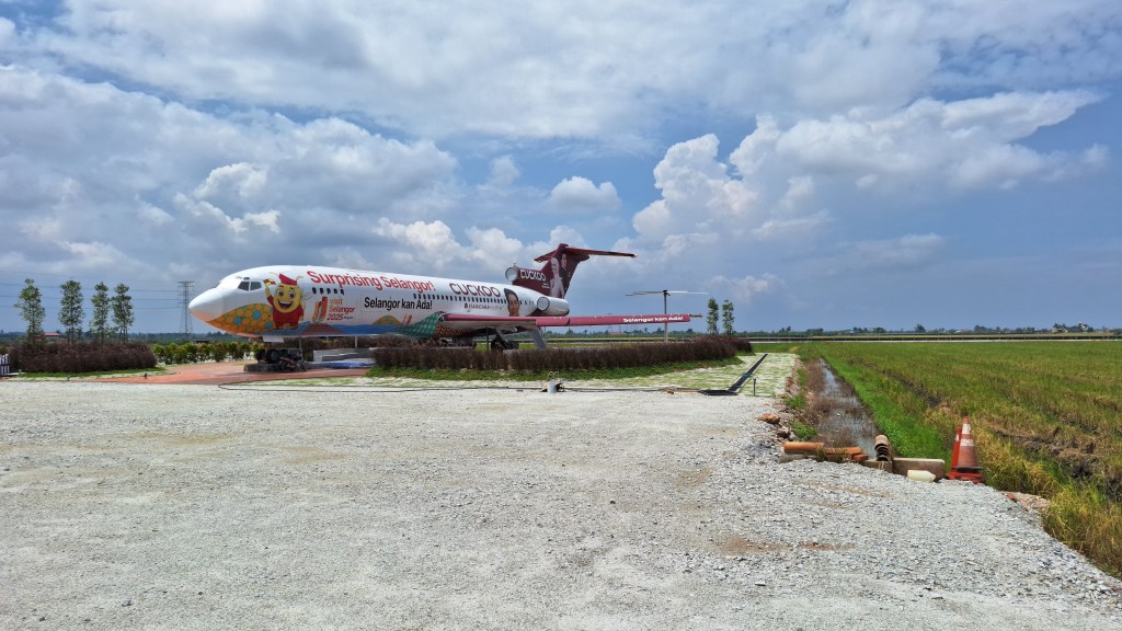 Auf der anschließenden Rückreise nach Kuala Lumpur machten wir dann noch Halt an Reisfeldern, in denen kurioserweise ein großes Flugzeug steht, welches aber abgezäunt und nicht zu besichtigen ist.